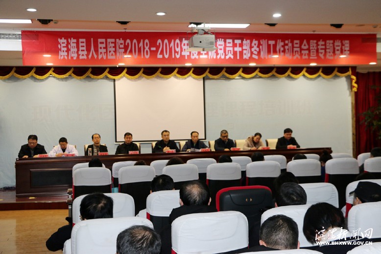 该院主要负责人上了题为《习近平新时代中国特色社会主义思想》的专题党课,要求全院党员干部以冬训工作为契机,坚持以习近平新时代中国特色社会主义思想为指导,努力提高党性修养,用党的理论武装自己,指导工作实践,解决困难,不忘初心,牢记使命,立足本职,勤勉工作,为医院更好更快发展作出新贡献。会上,刘爱军宣读《中共滨海县委关于认真开展2018~2019年度全县基层党员干部冬训工作的意见》,对医院党员干部冬训工作进行具体部署,要求各党支部充分把握冬训工作新要求,切实保障学习覆盖面和学习效果,使冬训工作更加贴近医院工作实际。