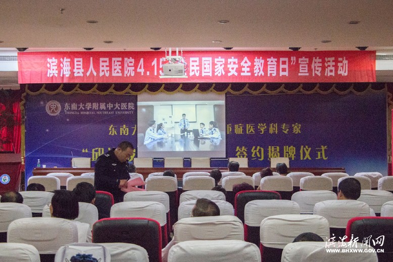 近日,县人民医院举办“国家安全教育日”宣传讲座,该院副院长滕宏伟出席,中层干部及科室人员150余人参加。