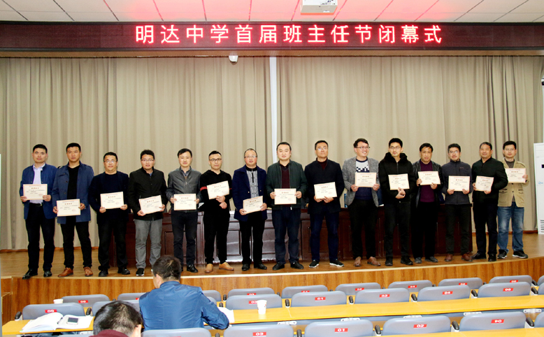 闭幕式上,张必利校长发表热情洋溢的讲话,阐述了班主任工作的重要性,勉励全体班主任以满腔的热情、高度的责任感,积极投身于班级管理工作。他指出,班主任队伍是学校教育教学的骨干团队,是学生健康成长的引领者,是学校、家庭、社会沟通的纽带与桥梁,是提高教育质量的基础与保障。每个班主任要增强责任感和使命感,强化常规管理,为学生发展营造良好的环境。学生代表激情朗诵《班主任辛苦了》,深情地表达对班主任工作的赞扬。校领导现场为15位优秀班主任颁发荣誉证书。学生们登台献上美丽的鲜花,把最美好的祝福送给心中敬爱的班主任老师。在深情的《感恩的心》乐曲声中,明达中学首届班主任节圆满落下帷幕。