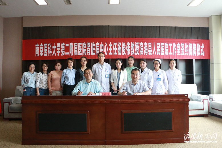 近日,南医大二附院肾脏病中心主任杨俊伟教授工作室的签约揭牌仪式在县人民医院举行。县人民医院党委书记、院长吴限与杨俊伟教授签署合作协议,共同为工作室揭牌。