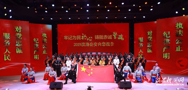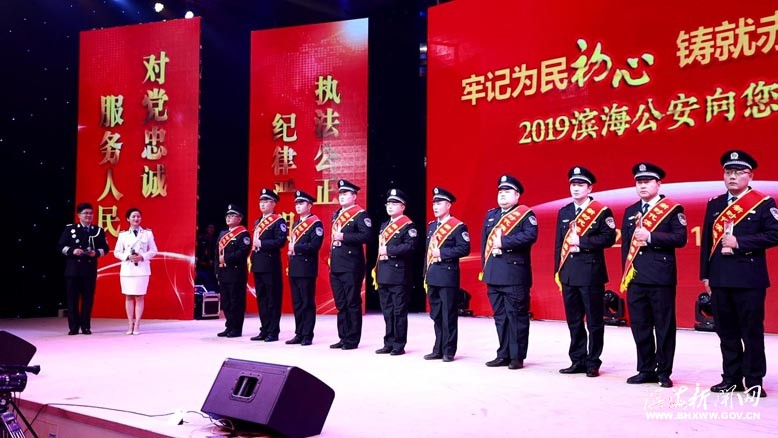 1月18日晚,滨海公安2019年工作报告会在县广播电视台综艺演播厅成功举行。报告会以“牢记为民初心,铸就赤诚警魂”为主题,通过工作报告视频专题片、歌舞表演、情景讲述、映画故事等形式,生动展现了滨海公安坚持以人民为中心,深入推进平安法治滨海建设,着力锤炼过硬公安队伍,有效维护全县社会大局持续平安稳定的动人画卷。并且表彰了2019年度滨海县“新时代最美警察”“新时代最美警辅”“新时代最美警嫂”。