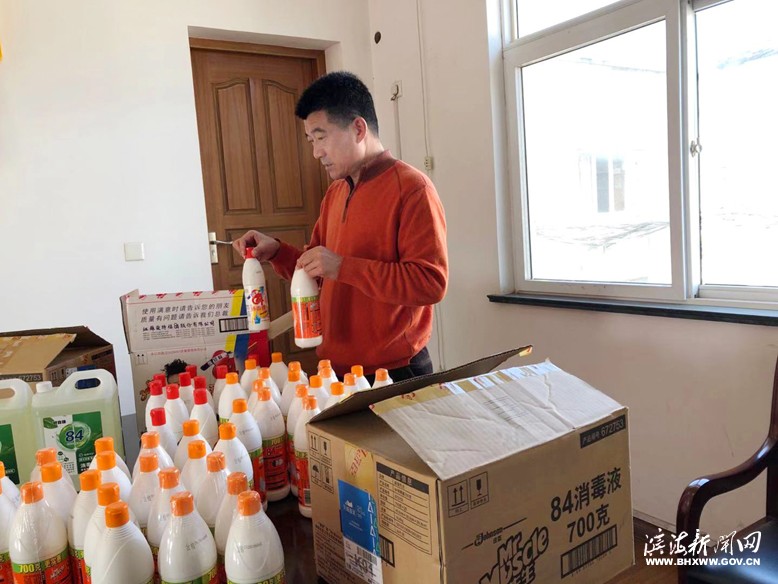 县政协委员于正林正在清点捐助的物资