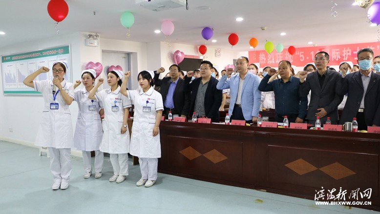 首先由该院护理部房荣琴主任带领护士宣誓,郭学文院长等院领导一起参加。通过宣誓,号召所有护理人践行南丁格尔精神,不忘初心,牢记使命,全心全意为人民服务,履行护士天职,以真心、爱心、责任心对待每一位病人。
