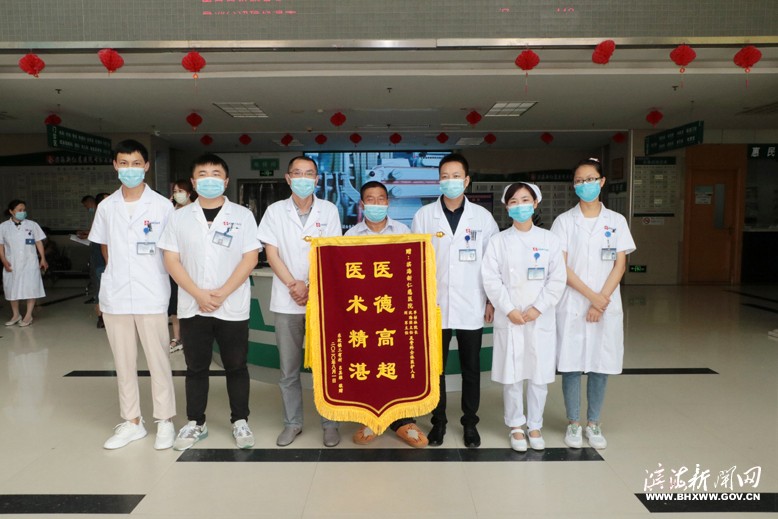 患者骨伤养好后,特于8月3日送来两面锦旗交到该院骨科医生手中,感谢该院骨科医护人员对他的精心治疗、悉心照顾。
