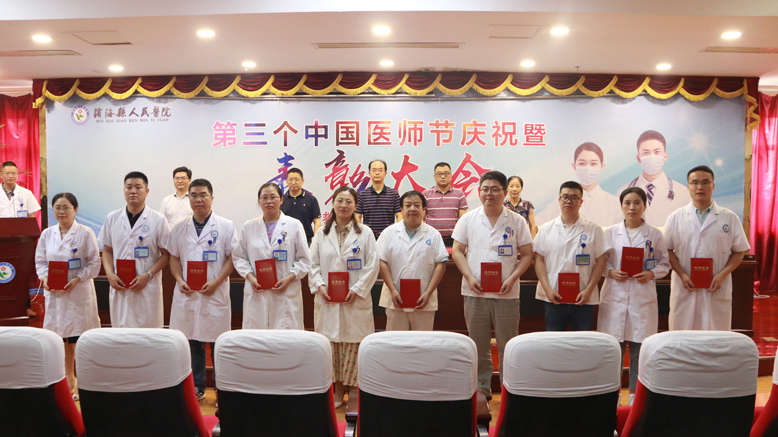为隆重庆祝第三个“中国医师节”,激励医师自尊自爱、爱岗敬业、投身医改、服务群众,近日,县人民医院召开第三个“中国医师节”庆祝暨表彰大会。医院领导滕宏伟、戴斌、刘斌、杨华、严腊梅出席。中层以上干部和接受表彰医师参加。