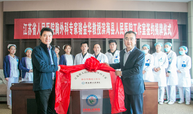 近日,县人民医院举行“江苏省人民医院胸外科专家骆金华教授工作室”签约揭牌仪式。县医院党委书记、院长吴限与骆金华教授签署合作协议,并共同为工作室揭牌。县医院心胸外科等相关科室人员参加活动。