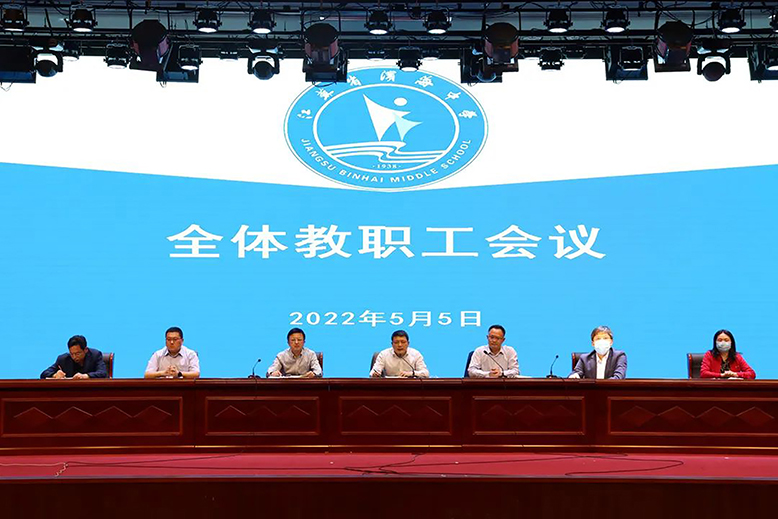 5月5日,滨海中学全体教职工会议召开。滨海中学党委书记、校长陆建,高晓东、许耀兵、孙其康、杨汉、樊启成、秦伯萍等校领导出席。会议由副校长高晓东主持。