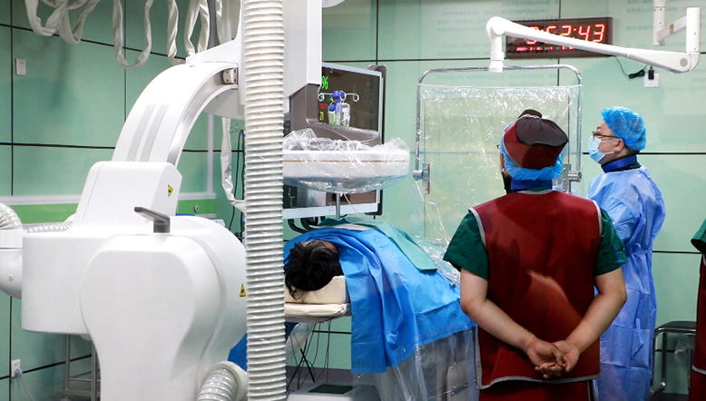 经术前充分准备,上午8时手术顺利开始。介入导管室内,两位医师紧张有序地操作,术中患者情况稳定。上午9时许,在郑州大学第二附属医院专家和滨海新仁慈医院介入导管室团队的不懈努力下,手术顺利完成。术后,患者无任何不良症状,安返病房。