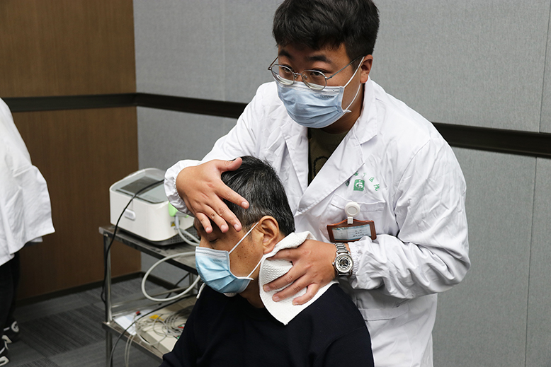 康复科医生针对民警、辅警工作性质,不仅向警员们详细讲解了体能训练过程中和日常工作中出现损伤时的处置和预防知识,还对训练伤、颈椎、脊柱变形的队员们进行了仪器康复、推拿、穴位贴敷等治疗。