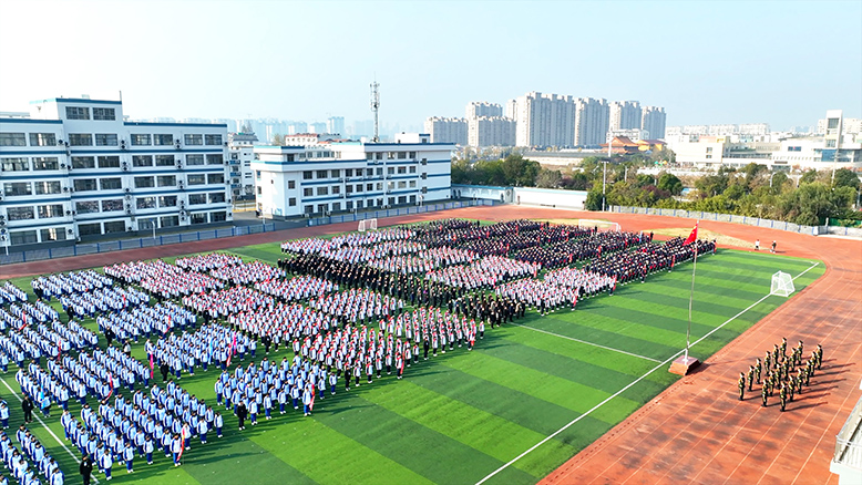 日前,明达中学3600多位师生齐聚操场,举行升旗仪式,同时进行迎评四星总动员。
