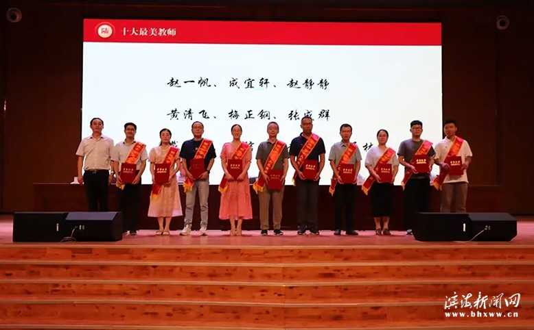 躬耕笃行,采撷芬芳。会上,副校长龚成东首先宣读了表彰决定。周爱华、高丽娜等33人荣获“先进工作者”称号;黄长泉、傅菁等10对师徒携手同行、教学相长,被评为“优秀师徒对子”;原高一语文备课组等10个备课组精诚团结、精细教研,荣获“先进备课组”称号;陈雪飞等9位老师,笔耕不辍、深耕科研、以研促教,被评为“教科研先进个人”;李一波、周同华、孟庆海、顾英、李建中等5位老师,光荣从教三十年,虽皓首苍颜,矢志不渝;李福扬、梁明高、张成群、周通林、赵鹤成、解立顺等6位老师,坚守杏坛近四十载,初心不改,荣获“敬业奉献奖”;赵一帆、成宜轩、赵静静、黄清飞、梅正钢、张成群、戴冬兰、王信亚、赵阳、周通林等10位老师兢兢业业工作、扎扎实实育人,用心教书,用爱化人,荣获“最美教师”称号。